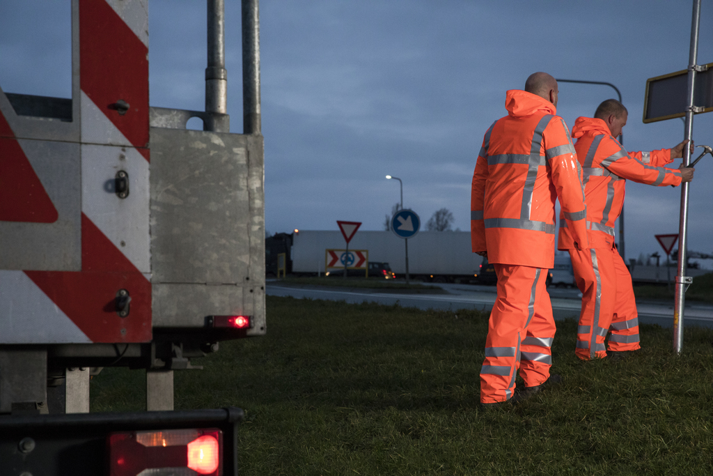 Item number: 482.23High Visibility coat. Reflective RWS striping. Press studs on the sleeve. Hood with drawstring.